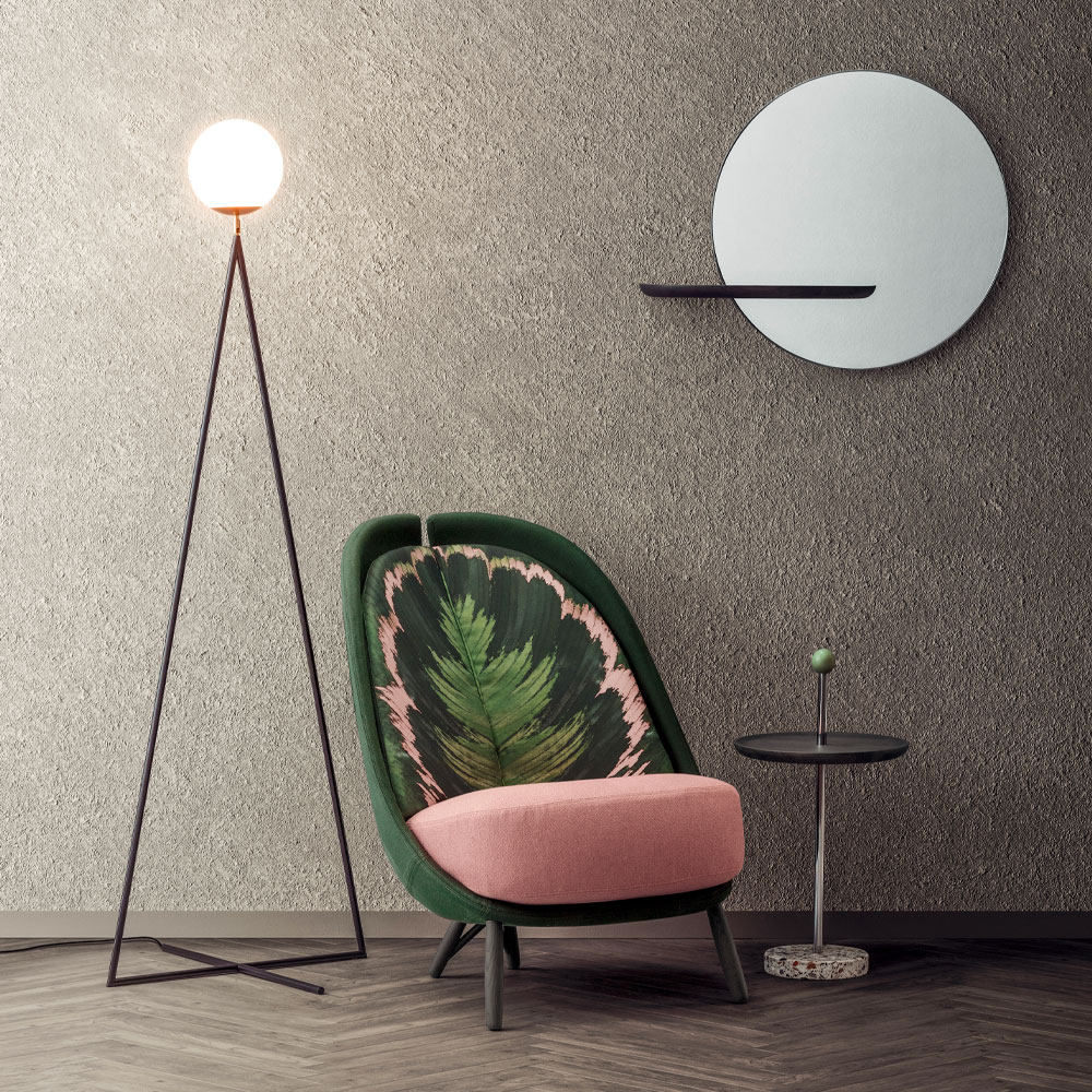 Specchio Argento con cornice Titanio opaco e mensola Borgogna.