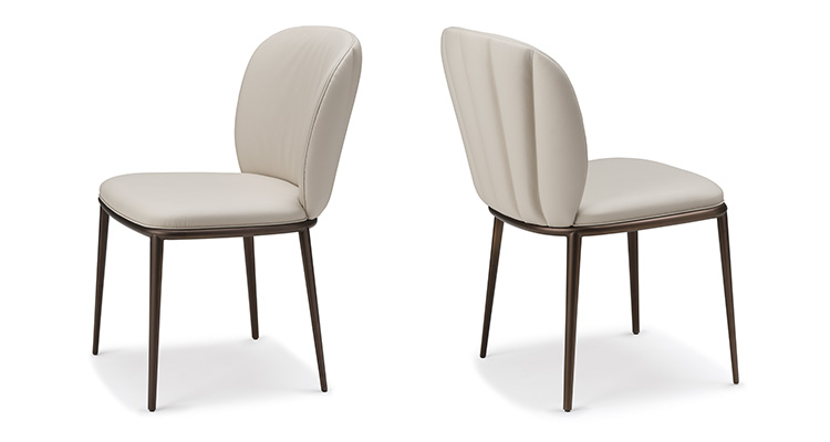 Sedia con struttura in acciaio cromato (08) o verniciato goffrato titanio (GFM11), bronzo (GFM18), graphite (GFM69), pearl (GFM70) o nero (GFM73).